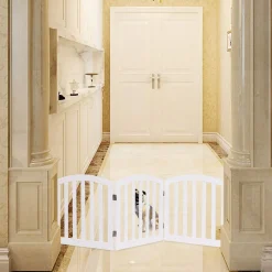 COSTWAY 3-teiliges Absperrgitter Hunde, Schutzgitter Holz, Klappbar, Treppengitter Hundeabsperrgitter Tuerschutzgitter, Weiss