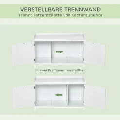 PawHut Katzenschrank Für Katzentoilette Katzenklo Katzenhaus Katzenkommode Katzenhöhle Mit Trennwand Schrank MDF Weiß 95,4 X 54 X 57,5 Cm