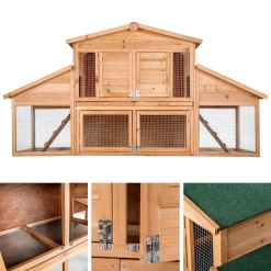 Tectake Kleintierstall XXL Doppelstöckig Mit Ruhezone 226x77x95,5cm – Braun