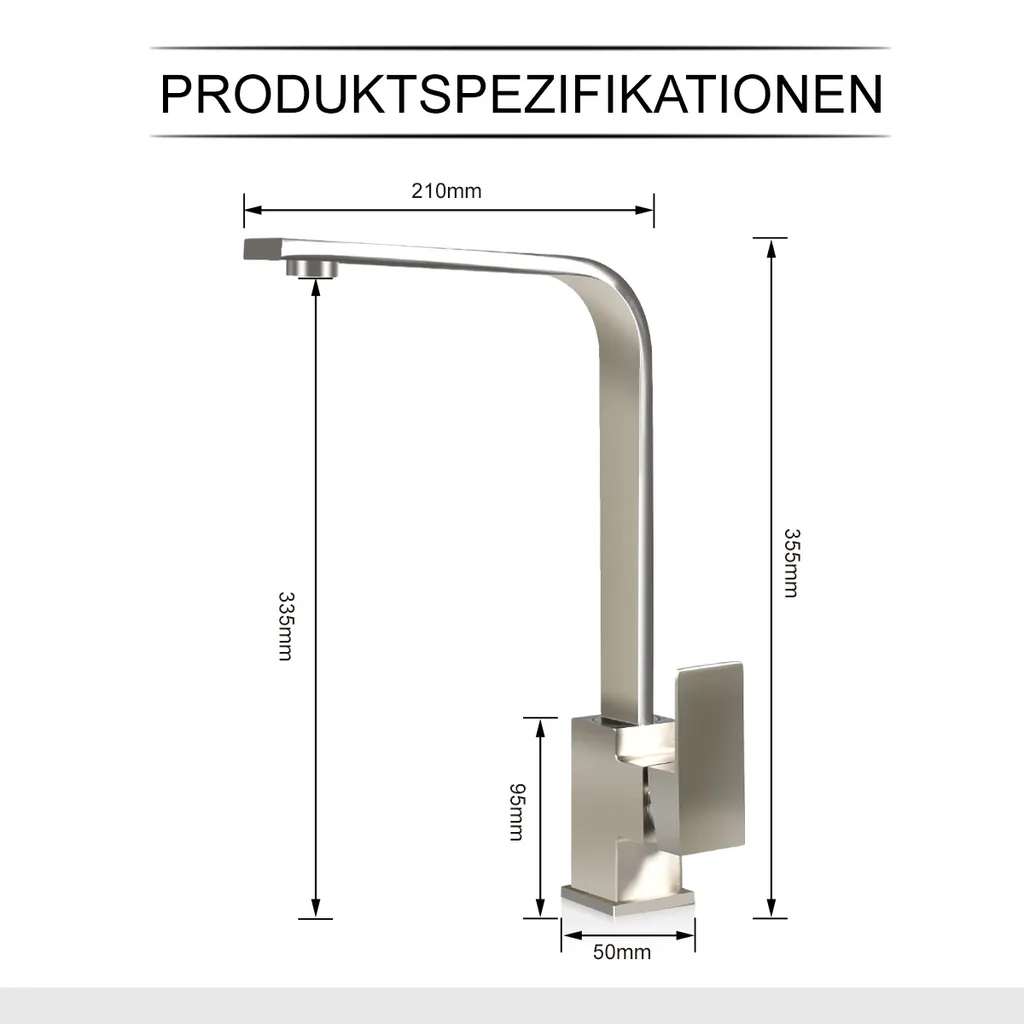 Tonerkingdom Wasserhahn Küchenarmatur 304 Edelstahl Quadratische Spüle Mischbatterie Küchenarmatur Mit Schwenkbarem Auslauf Deck Mount