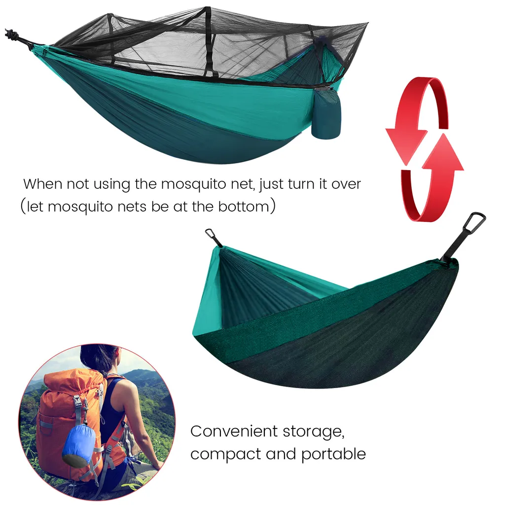 Topchances Camping Hängematte Mit Moskitonetz Und Tarp, Reise Zeltplane Für Outdoor,Wandern,Trekking (Grau+Dunkelgrün)