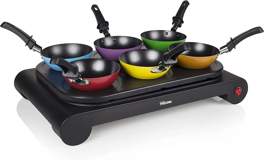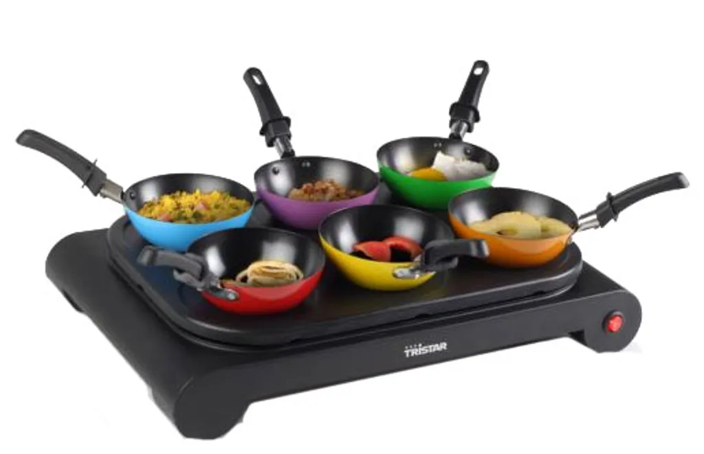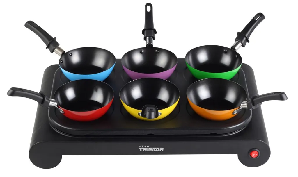 Tristar Haushaltsgeräte Tristar BP 2827 Tisch-Kochplatte Wok-Set Mit 6 Pfannen Und Backform Für Pfannkuchen