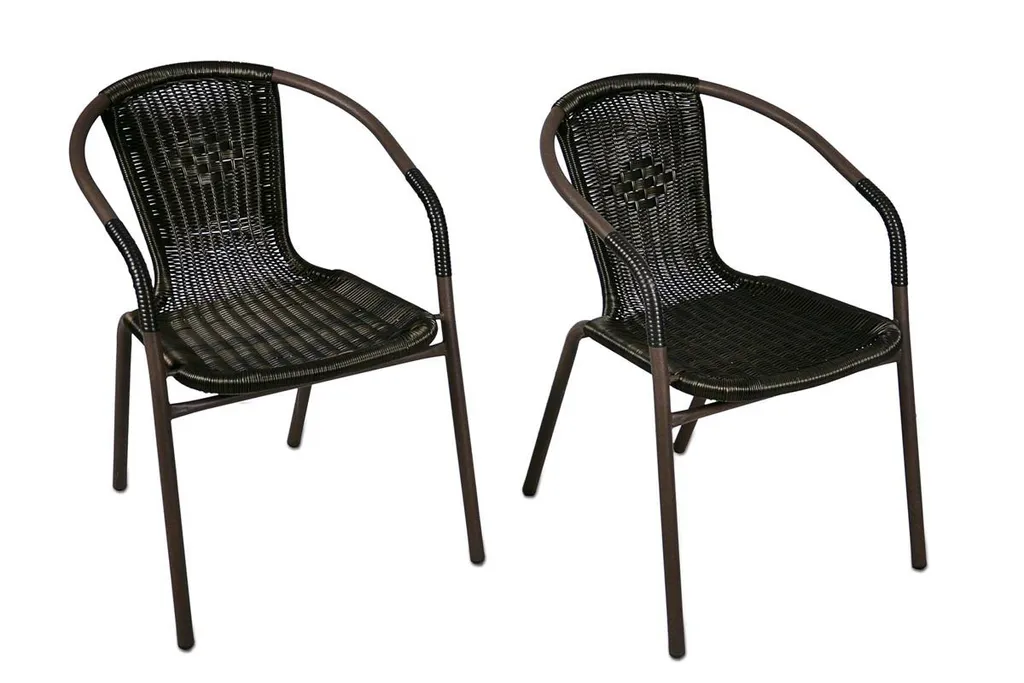 VCM 2er Set Bistrostuhl Dunkel-braun Stapelstuhl Balkonstuhl Rattanstuhl Poly-Rattan