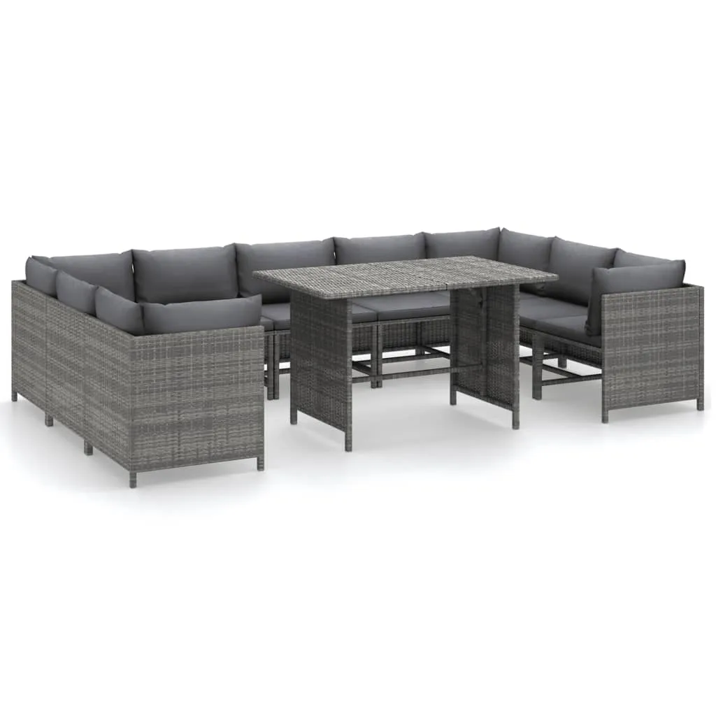 VidaXL 10-tlg. Garten-Lounge-Set Mit Kissen Poly Rattan Grau