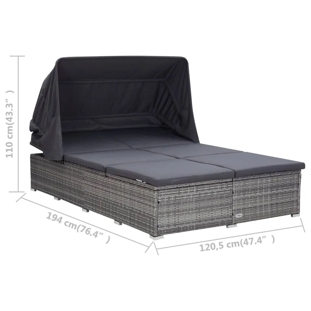VidaXL 2-Personen-Sonnenliege Mit Auflage Poly Rattan Grau