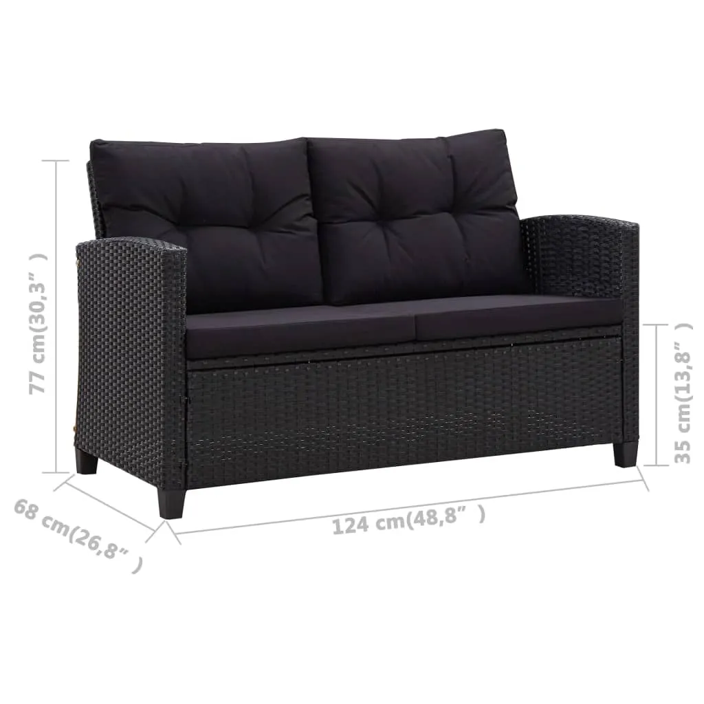 VidaXL 2-Sitzer-Gartensofa Mit Kissen Schwarz 124 Cm Poly Rattan