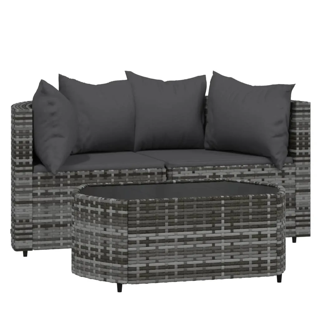 VidaXL 3-tlg. Garten-Lounge-Set Mit Kissen Grau Poly Rattan