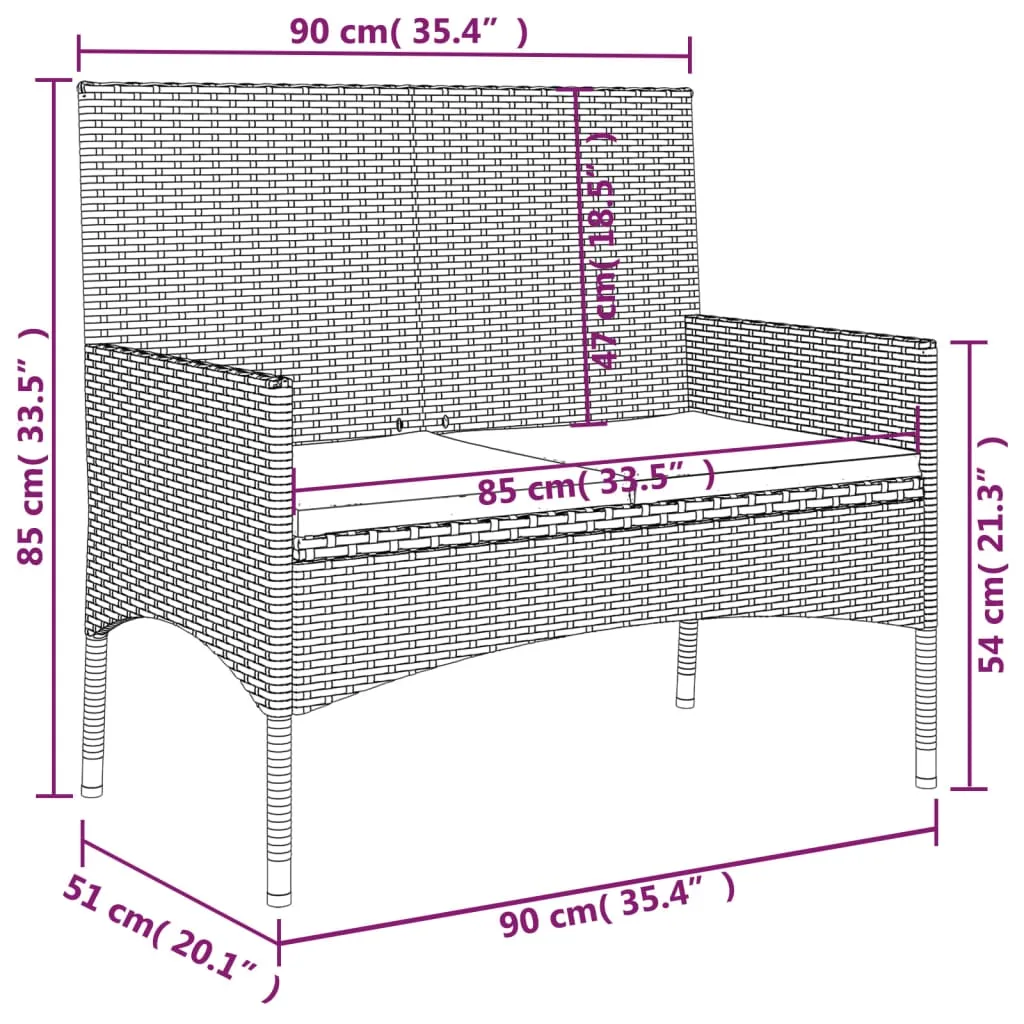 VidaXL Gartenbank 2-Sitzer Mit Kissen Schwarz Poly Rattan