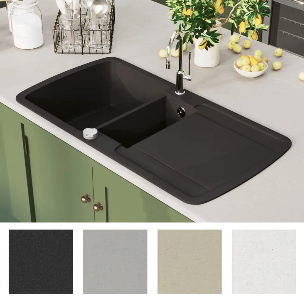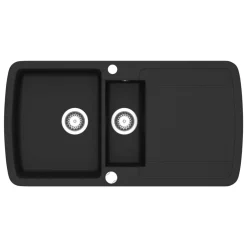 VidaXL Granit Spülbecken Doppelbecken Schwarz