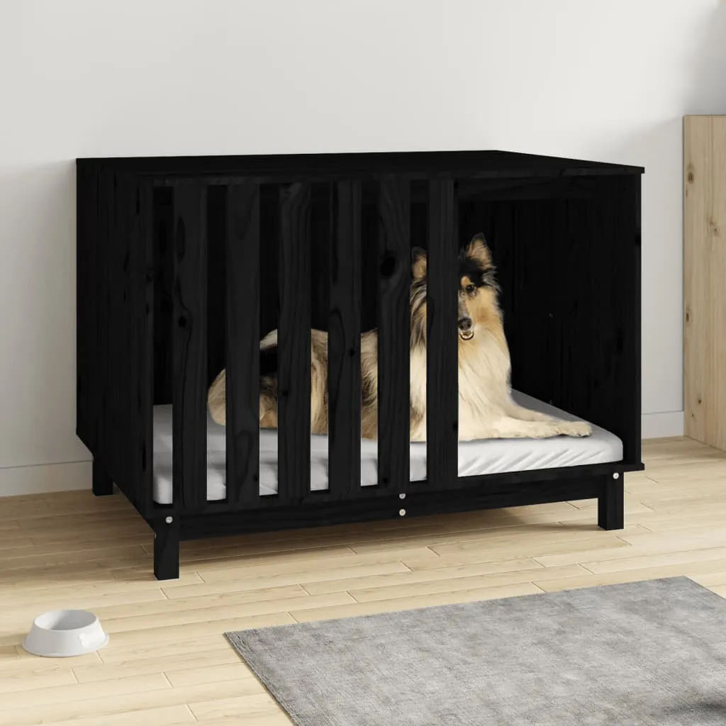 VidaXL Hundehütte Schwarz 100x70x72 Cm Massivholz Kiefer
