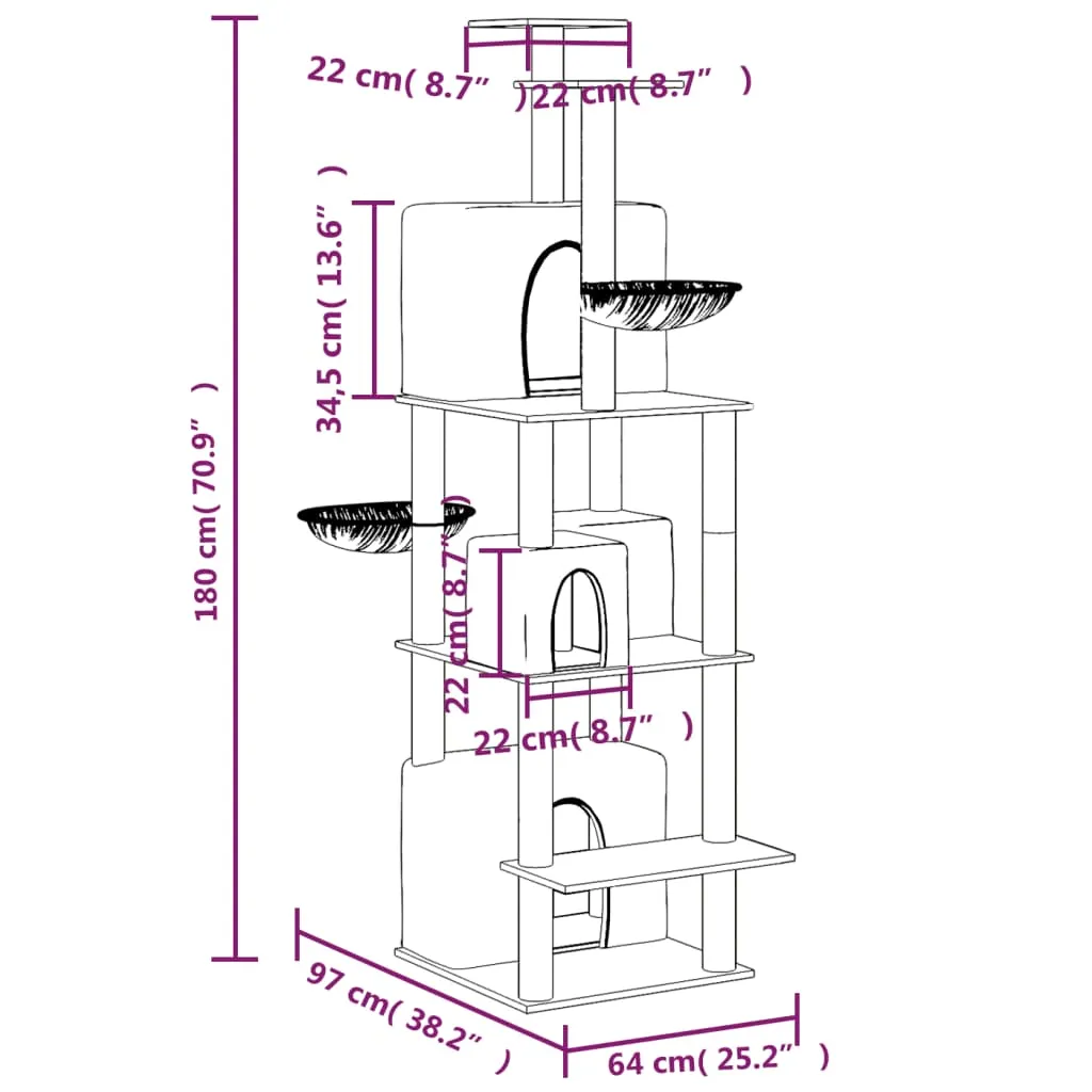 VidaXL Kratzbaum Mit Sisal-Kratzs?ulen Dunkelgrau 180 Cm