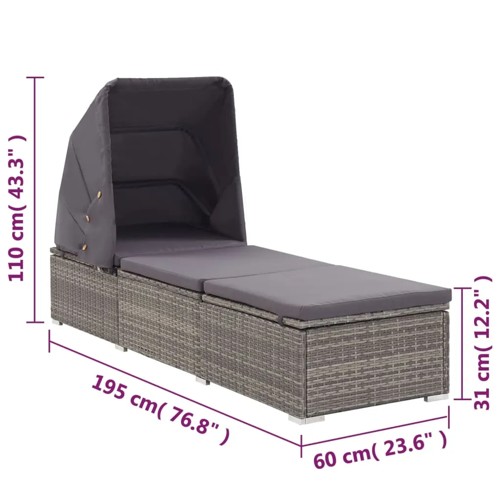 VidaXL Sonnenliege Mit Sonnenschutz Und Auflagen Poly Rattan Grau