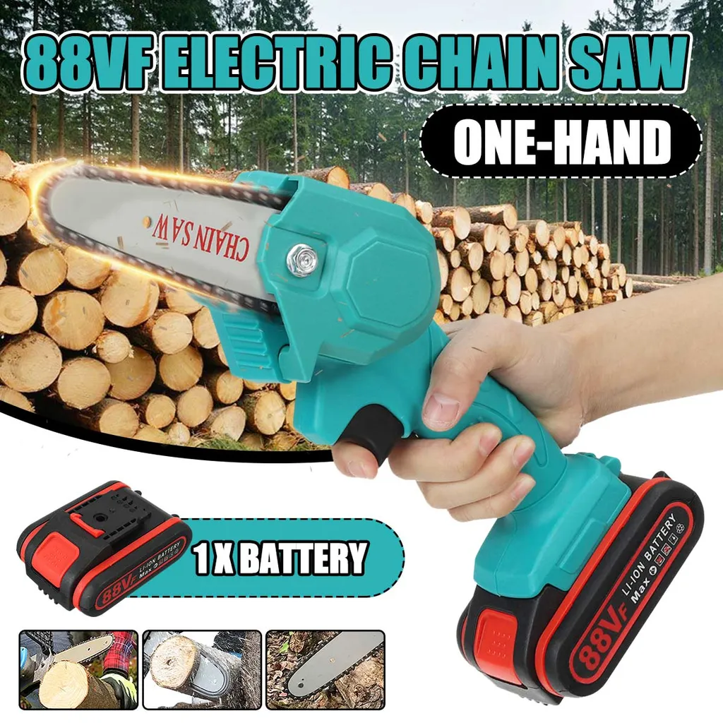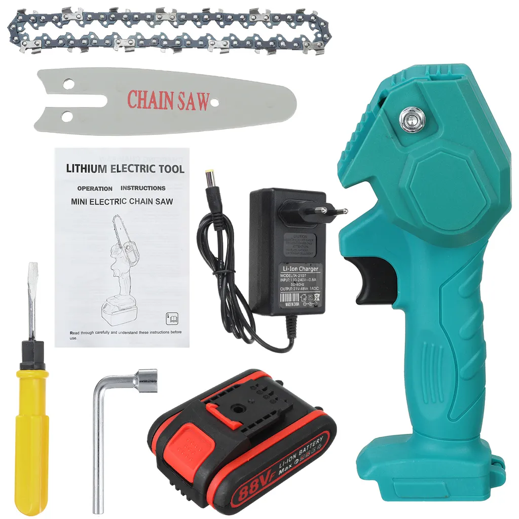 VIOLEWORKS Elektrokettensäge Akku-handkettensäge Mit Ladegerät Und 1 Batterie, 88VF 1080 Watt Blau (EU-Stecker)