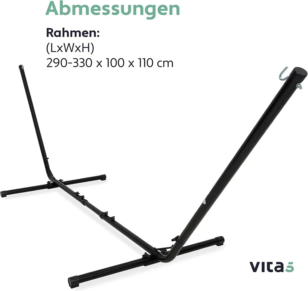 VITA5 Hängemattengestell Outdoor – Hängemattengestell Für Hängematten – Stabiles Stahl Hängematte Mit Gestell Klappbar – Tragbarer Ständer Für Hängematte (Ohne Getränkehalter)