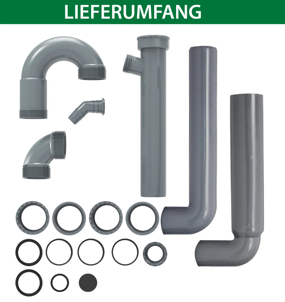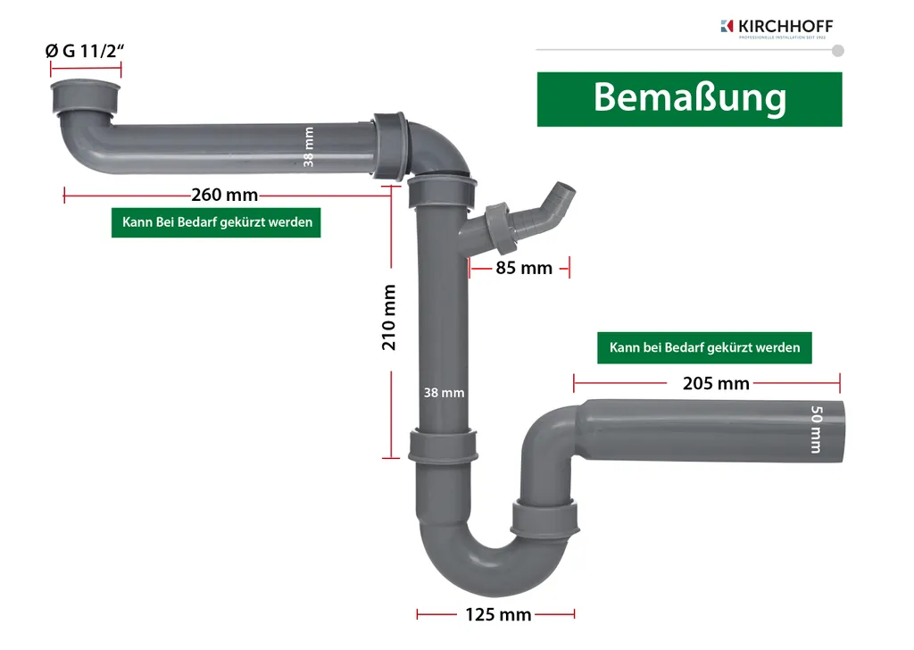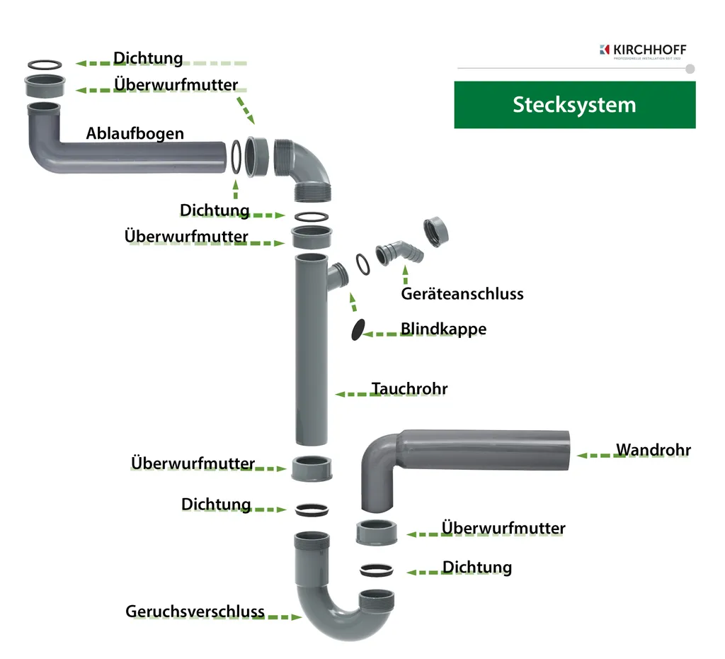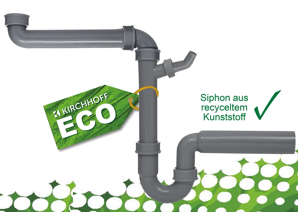 W. Kirchhoff GmbH KIRCHHOFF ECO SAVE Raumspar Siphon Küchenspüle, Abfluss Für Spüle Küche Aus Recyceltem Kunststoff, Ablaufgarnitur Mit Maschinenanschluss