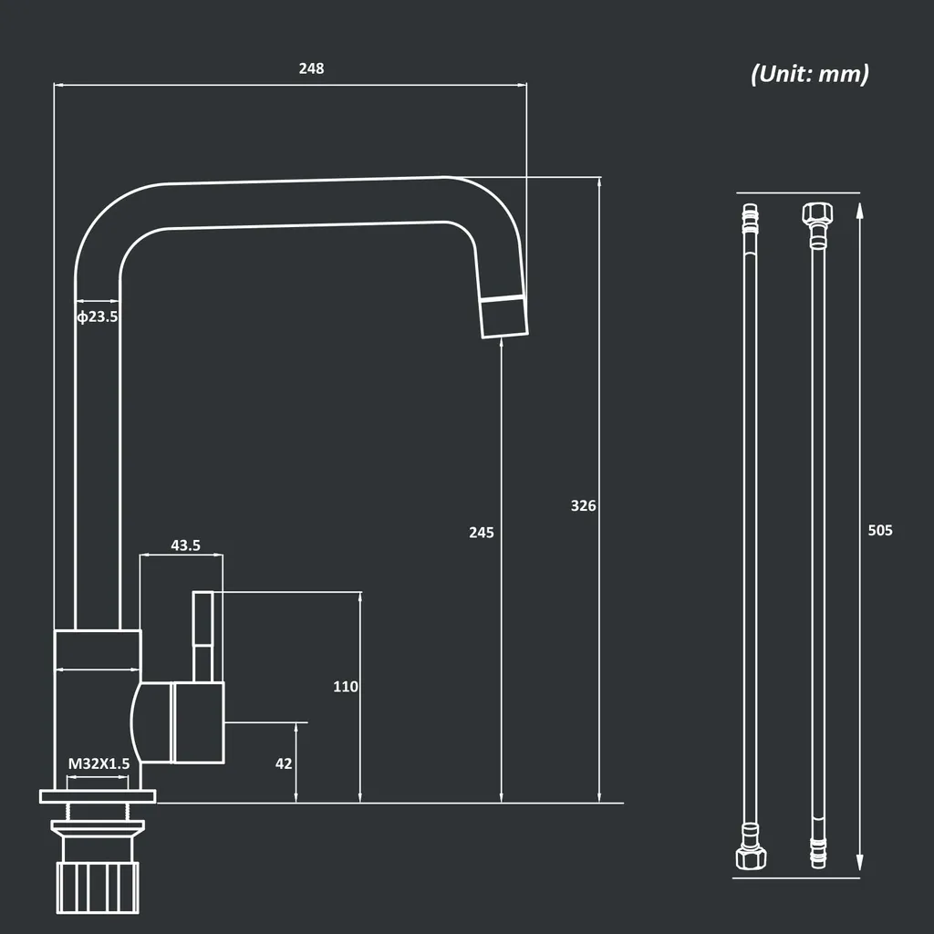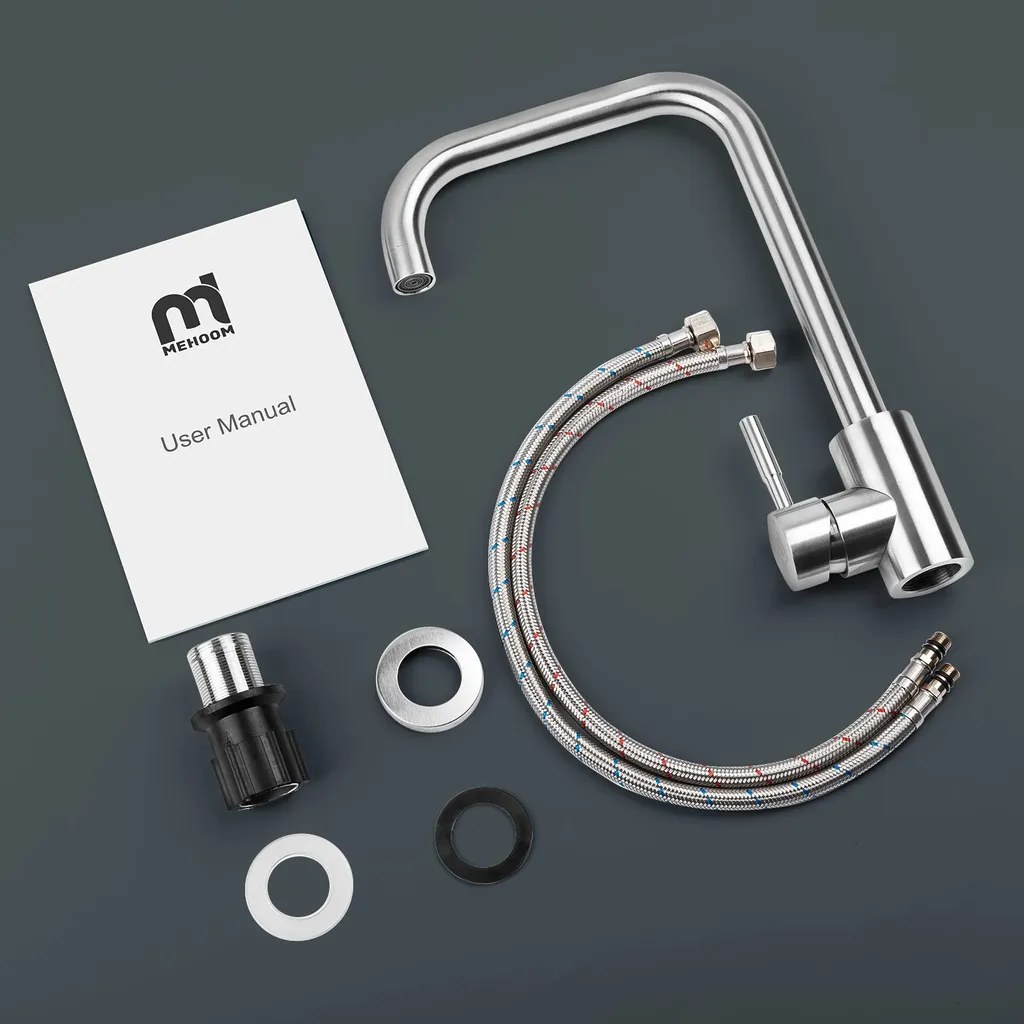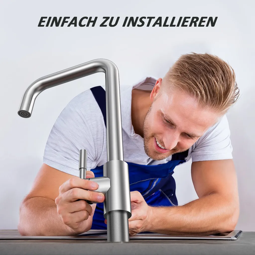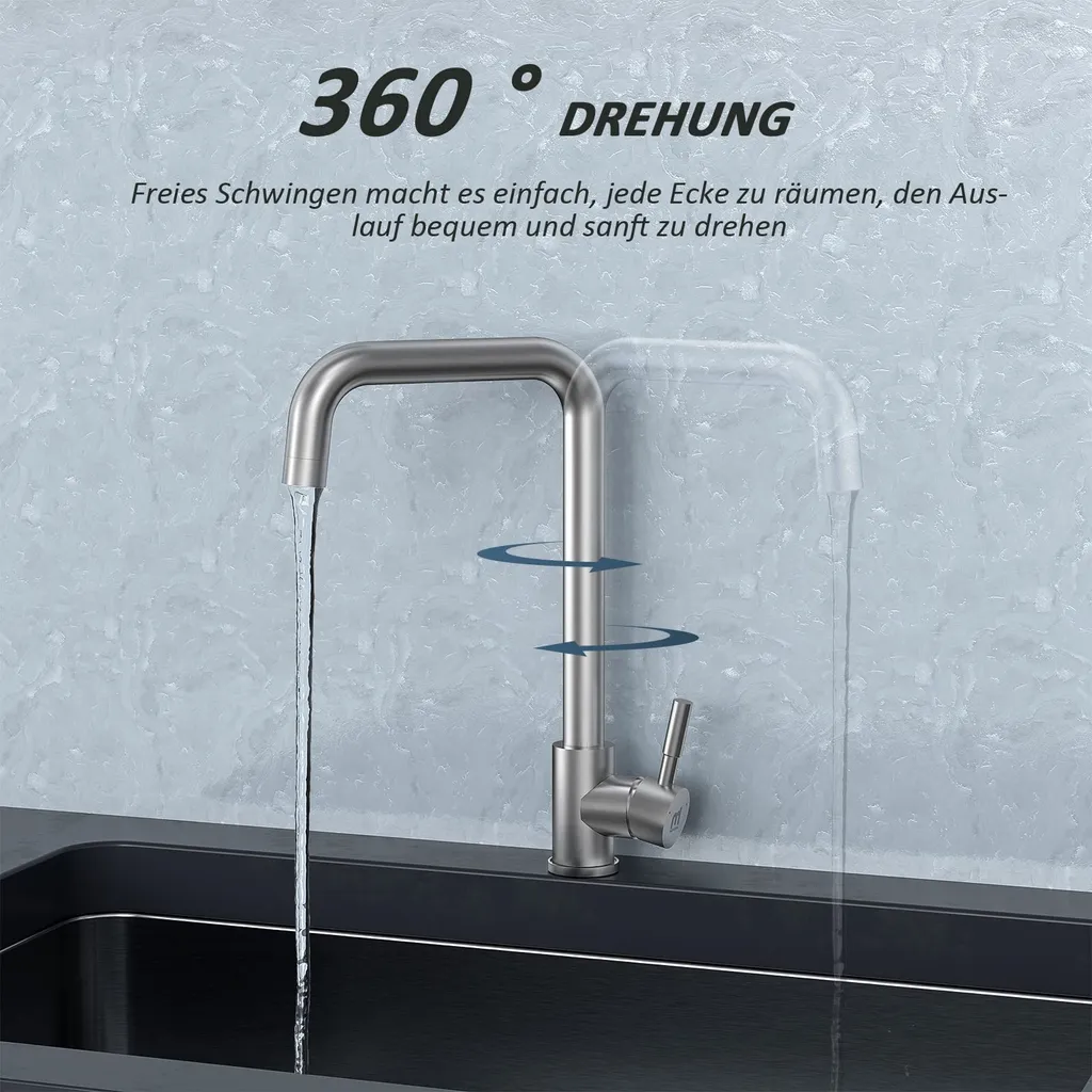 Wasserhahn Küche Edelstahl, M Mehoom Küchenarmatur 360° Drehbar, Mischbatterie Küche Mit Abnehmbarer ABS Sprudler, Spültischarmatur Mit G3/8“ Anschlüsse, Keramikkartusche, Hoher Auslauf (245mm)