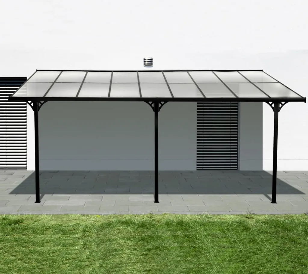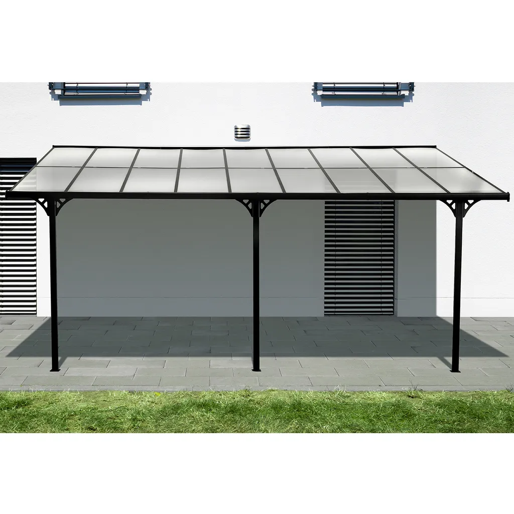 Westmann Aluminium Terassenüberdachung Mit Doppelstegplatten „Bruce“ Schwarz 556 X 300 X 225-270 Cm (L X B X H)