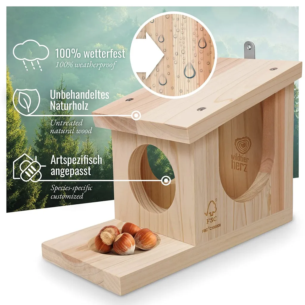 Wildtierherz Eichhörnchen Futterhaus Spielhaus Aus Massivholz, 100% Wetterfest