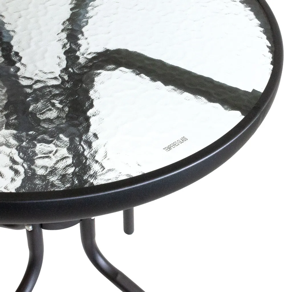 Wohaga Bistrotisch ‚Salzburg‘ Rund 60cm Mit Geriffelter Glasplatte – Schwarz