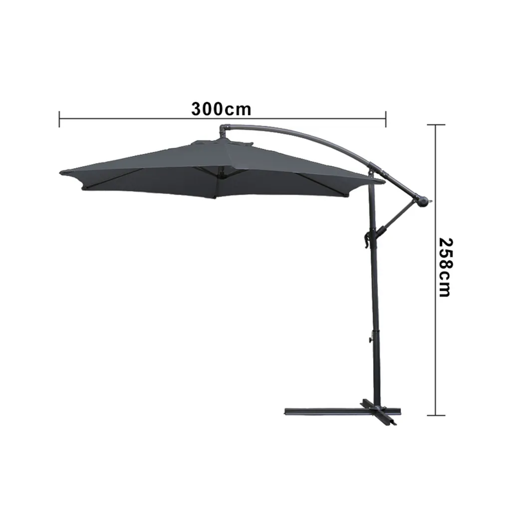 Wolketon 3m-3.5m Sonnenschirm Neigbar Ampelschirm Balkonschirm Marktschirm UV40+ Gartenschirm,Grau,3m