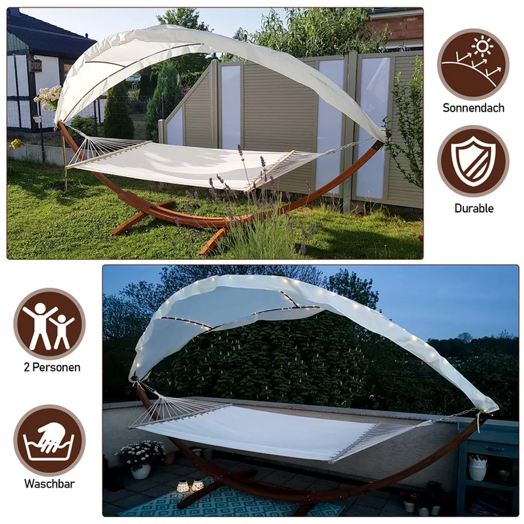 Wolketon Hängematte Hängematten Mit Gestell Und Sonnendach Hammock Aus Wetterfestem Lärchenholz Bis 200kg Stabhängematte Für 2 Personen Outdoor Und Indoor
