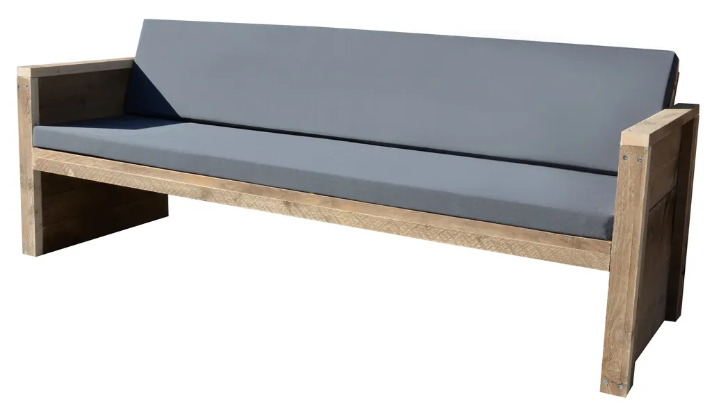 Wood4You Gartenbank Holz „Ameland“ – Wetterfest Massivholz Rustikal – Holzbank Sitzbank Balkonmöbel Terassenmöbel Mit Kissen – DIY Baumbank Mit Lehne – Gerüstholz