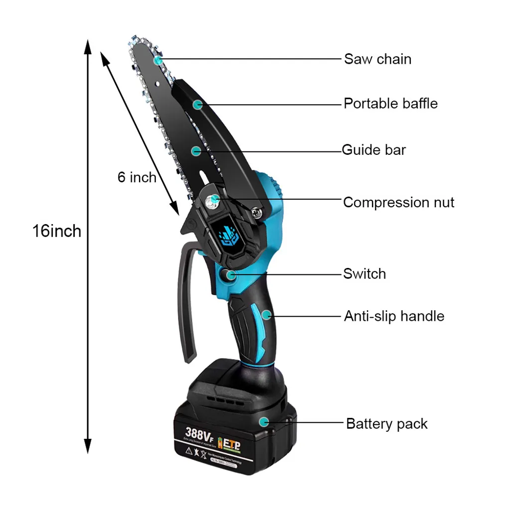 Yofidra 6 Zoll Elektrokettensägen Garten Handkettensäge Mit 2 Akkus Und 4 Gold Ketten