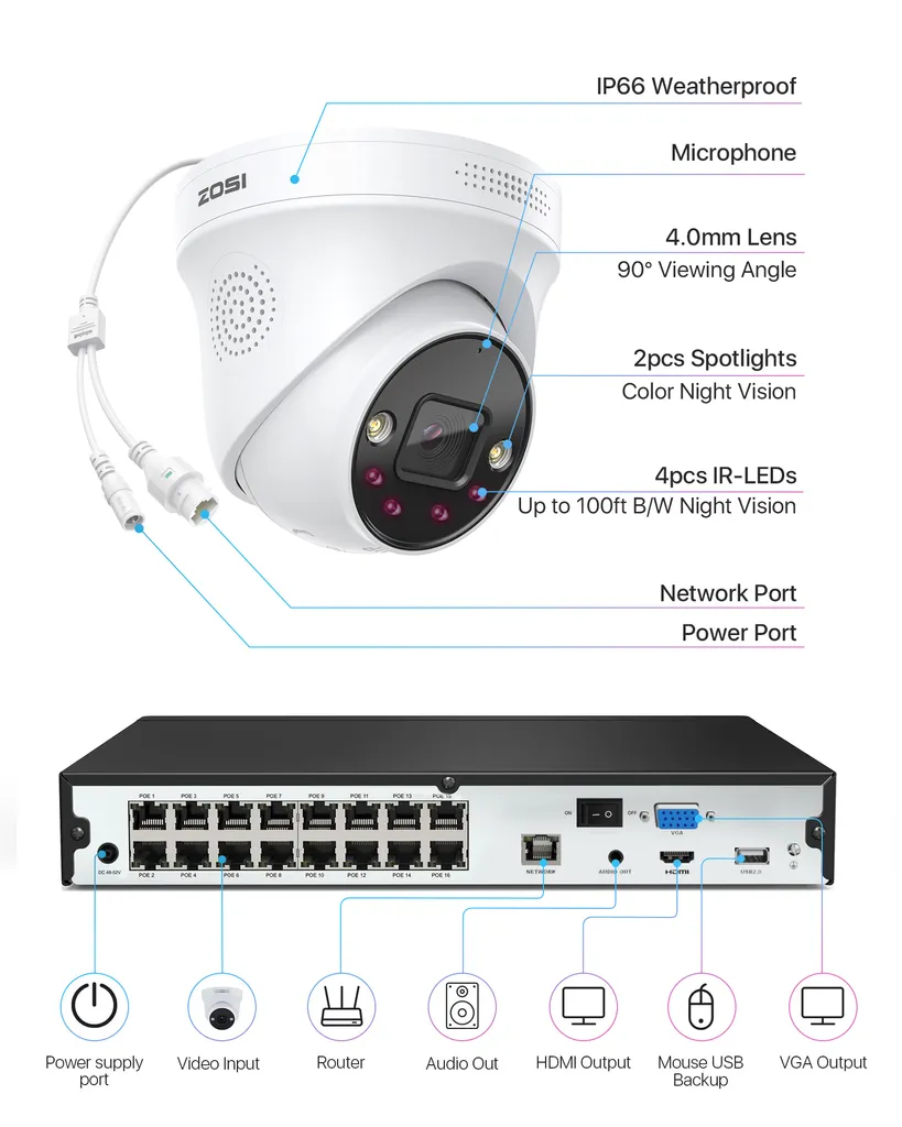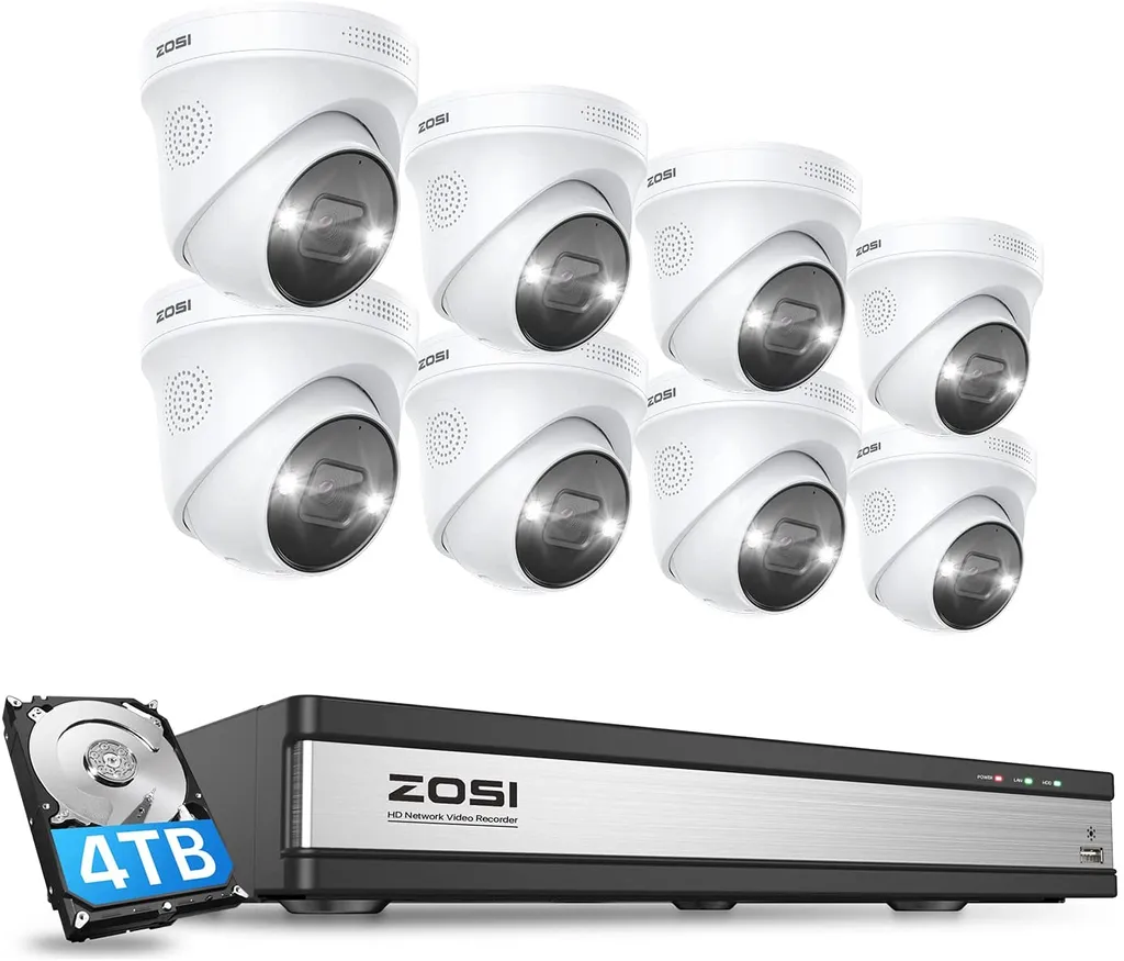 ZOSI 4K Überwachungskamera System, 8X 8MP PoE IP Außen Kameras Und 8CH 4TB HDD NVR Für 24/7 Aufzeichnung, Personenerkennung, Alarm