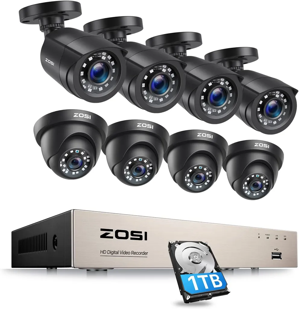 ZOSI 8CH 2MP Überwachungskamera Set Aussen Und Innen, 4X 1080P Dome Kamera + 4X Bullet Kamera Überwachungssystem 1TB HDD DVR, IP66 Wasserdicht