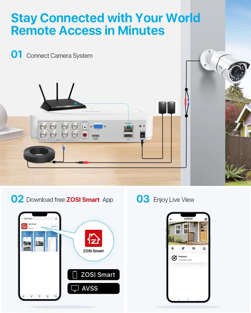 ZOSI 8CH 5MP Überwachungskamera Set Aussen, 8CH 2TB HDD DVR Mit 8 Wasserdicht 1920P Video Kamera CCTV System, Bewegungserkennung, 36M IR Nachtsicht