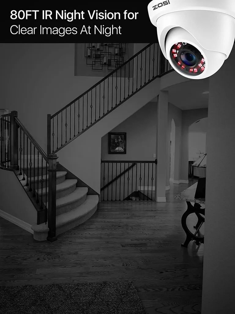 ZOSI 8CH H.265+ 1080P Außen Überwachungskamera System Mit 1TB Festplatte Und 4x 2MP Dome Video Kamera Set Für Zu Hause