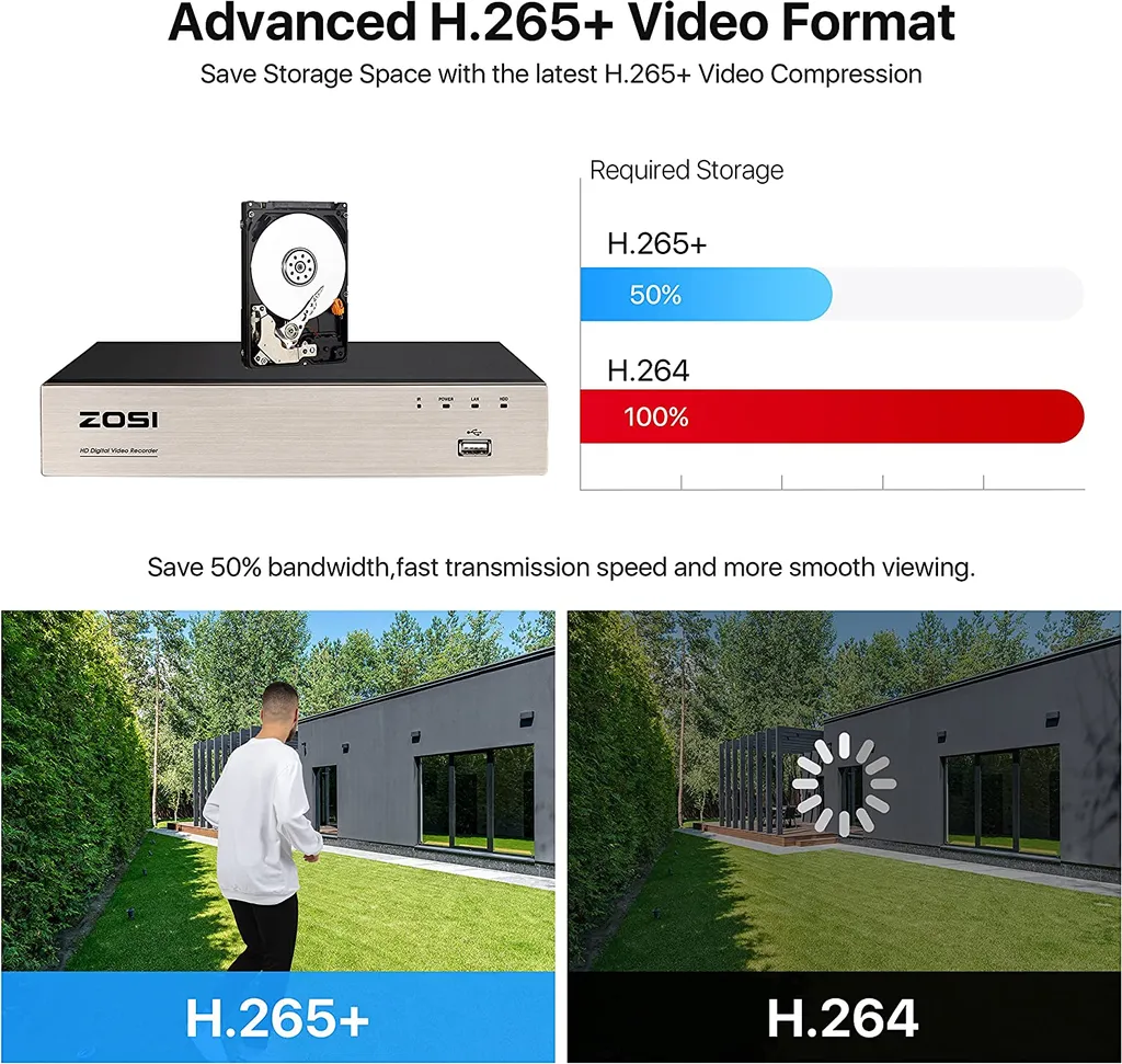 ZOSI Außen 1080P Überwachungskamera Set 8CH H.265+ DVR Mit 8 HD 2MP Dome Video Kamera System, 2TB Festplatte, 24M IR Nachtsicht